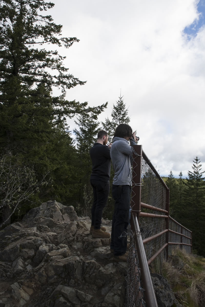 Along with a great view, you’ll find several picnic tables placed around the peak. On a clear day, you’d surely be able to view the Cascade range from Mt. Baker south to just north of Mt. Rainier. The rock peak is bordered with a chain-link fence on the east side for your protection. The rock face drops off sharply.